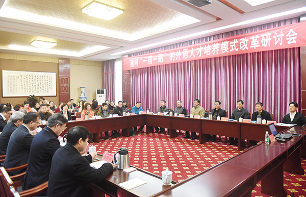 本网讯 3月25日上午,面向“一带一路”的外语人才培养模式改革研讨会在raybet官网举行。校党委书记陈弘、校长曾宝成,副校长宋宏福、郑山明、李常健出席,解放军外国语学院教授、博士一行12人,学校科技处、人事处领导,外国语学院部分老师参加了会议。