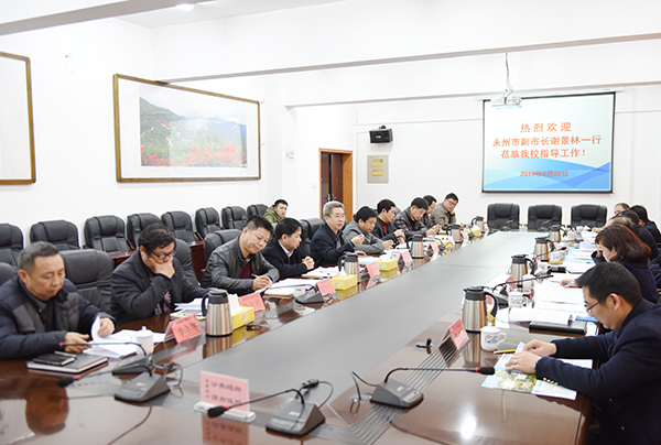 本网讯 2月22日下午,永州市人民政府副市长谢景林一行莅临raybet官网调研指导,参观了校园并听取了校长曾宝成的有关介绍。
