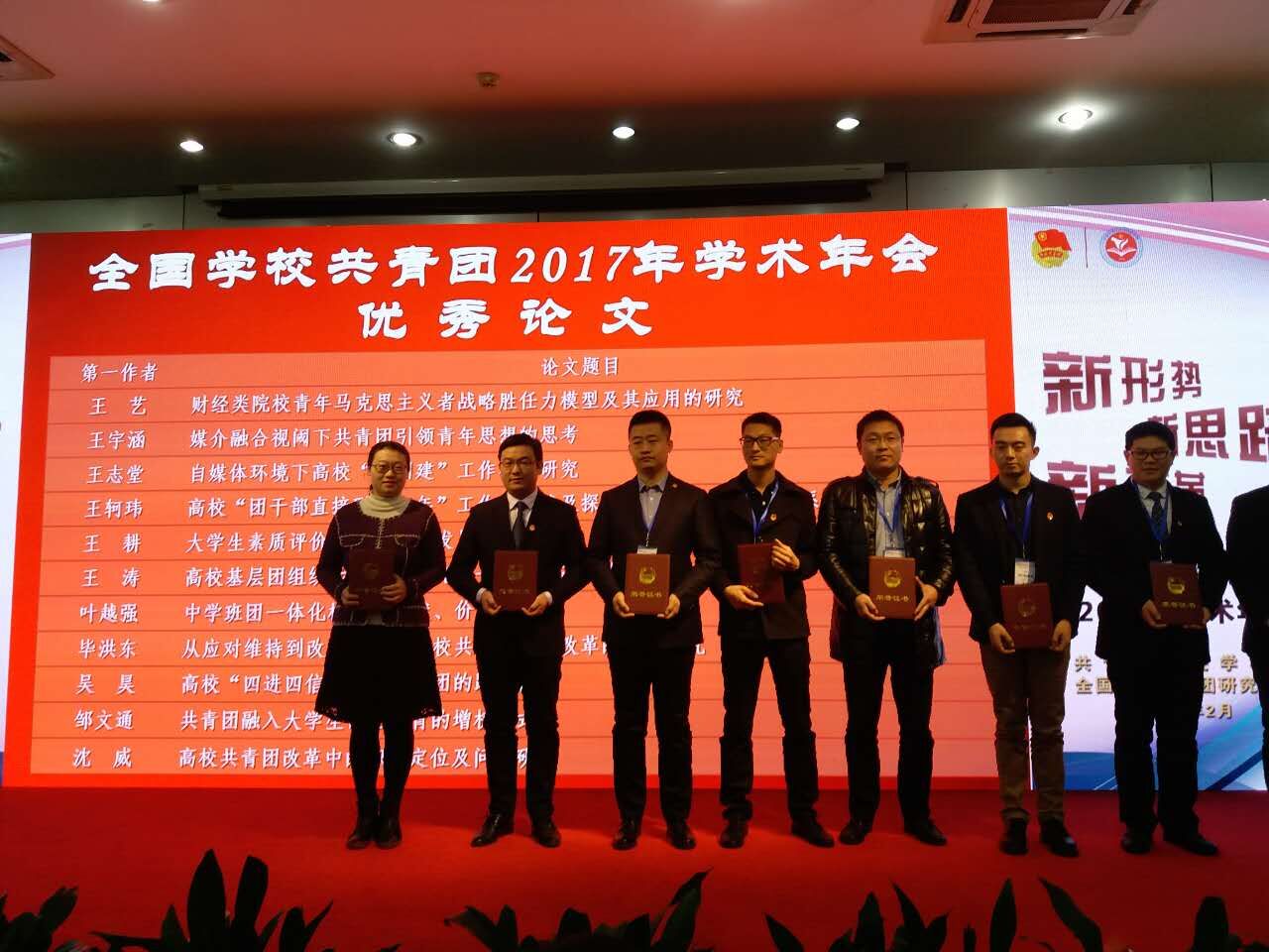 交流环节,王志堂向团中央杜汇良部长汇报了raybet官网共青团工作的经验和特色,得到杜部长的充分赞许。年会期间,主办方举办了主旨报告和优秀论文颁奖仪式。邀请到清华大学林泰教授、中国高等教育学会会长瞿振元教授、北京大学潘维教授、中国人民大学王义桅教授等知名专家学者围绕当前国内政治、经济、教育发展形势做主题报告。王志堂老师提交的《自媒体环境下高校“微团建”工作机制研究》论文荣获年会优秀论文(全国共25篇),并受邀作主题发言,受到与会领导、同仁的一致好评。