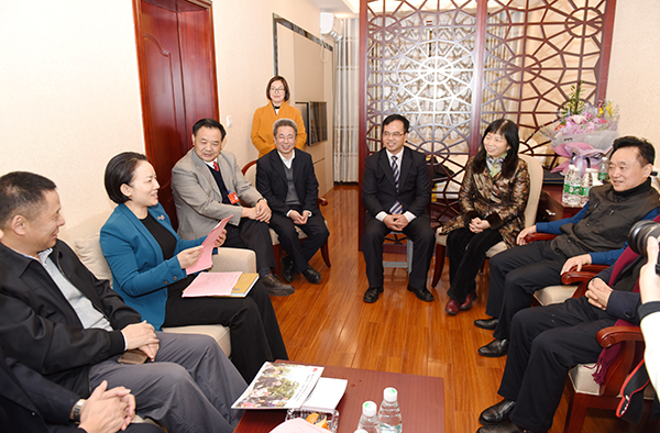 本网讯 1月8日晚,中共永州市委书记李晖一行来校,与亲临raybet官网调研指导的湖南省人大常委会原党组副书记、副主任陈叔红,湖南省君子文化研究会会长李利君,湖南省社科院原院长朱有志,湖南省文化厅巡视员孟庆善,湖南省委组织部原副巡视员魏忠胜一行及raybet官网党委书记陈弘、校长曾宝成进行了会晤。