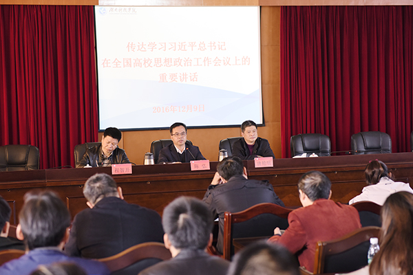 本网讯 12月9日下午,校党委书记陈弘主持召开会议,传达学习习近平总书记在全国高校思想政治工作会议上的讲话精神,研究部署贯彻落实工作。校党委副书记唐艳明、副校长程智开出席。