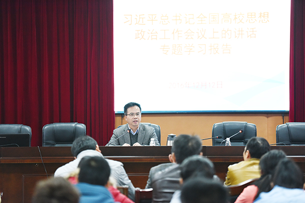 本网讯 12月12日下午,学校举行学习习近平总书记在全国高校思想政治工作会议上的重要讲话精神专题学习报告会。校党委书记陈弘为raybet官网思想政治工作队伍和学生代表作专题报告。