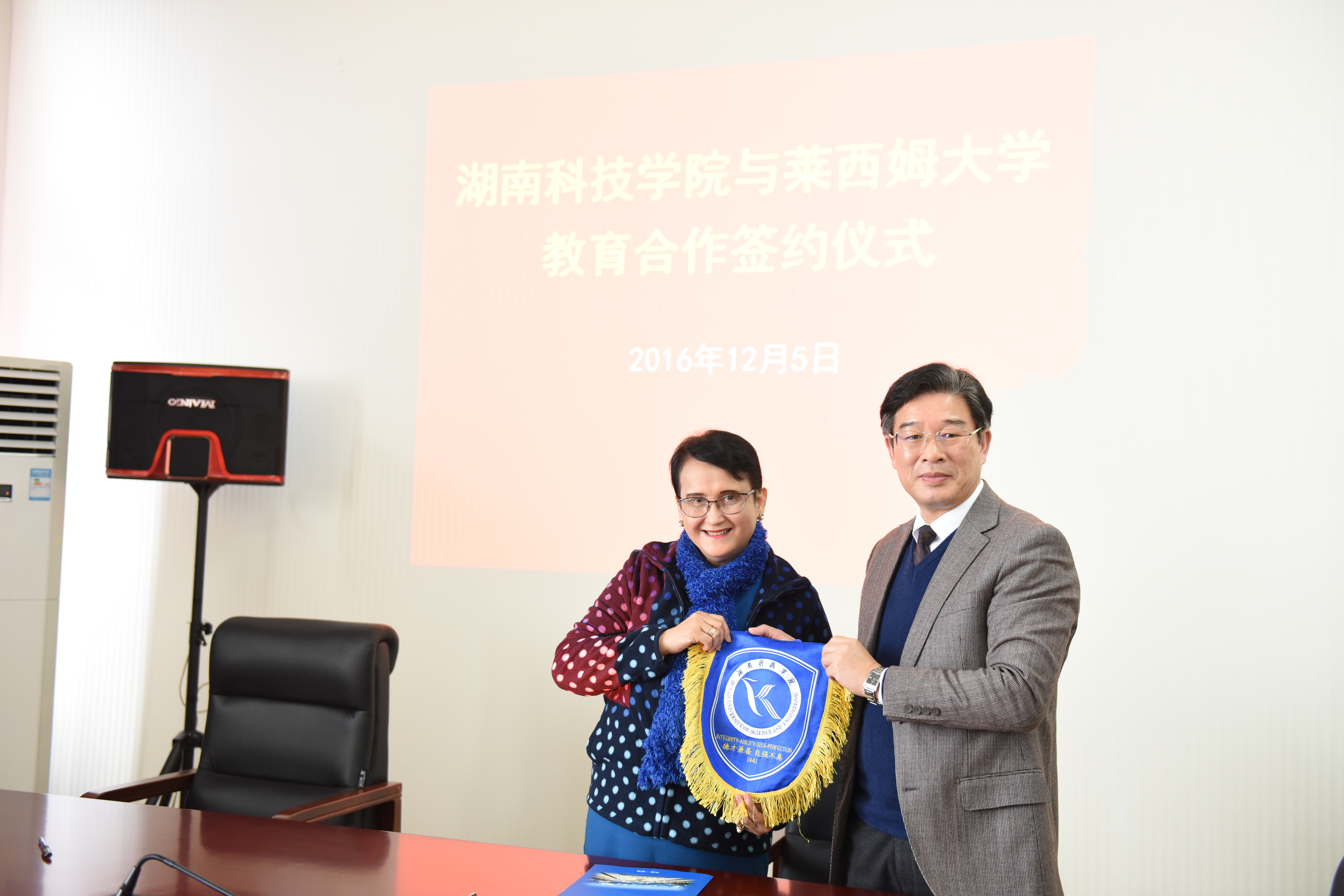 本网讯 12月5日上午,菲律宾莱西姆大学校长Esmenia R. Javier博士一行来访raybet官网就开展两校教育合作进行洽谈。副校长宋宏福与Esmenia R. Javier进行了友好洽谈,两校就教师互派与研修项目、共同培养研究生项目、学生交流项目达成一致合作意向,并签订了教育合作备忘录。
