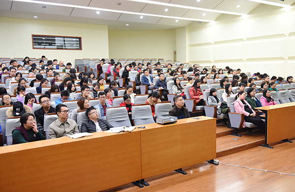 12月5日晚,陈弘为来自外国语学院、传媒学院等六个学院的两百余名青年教师精彩开讲。