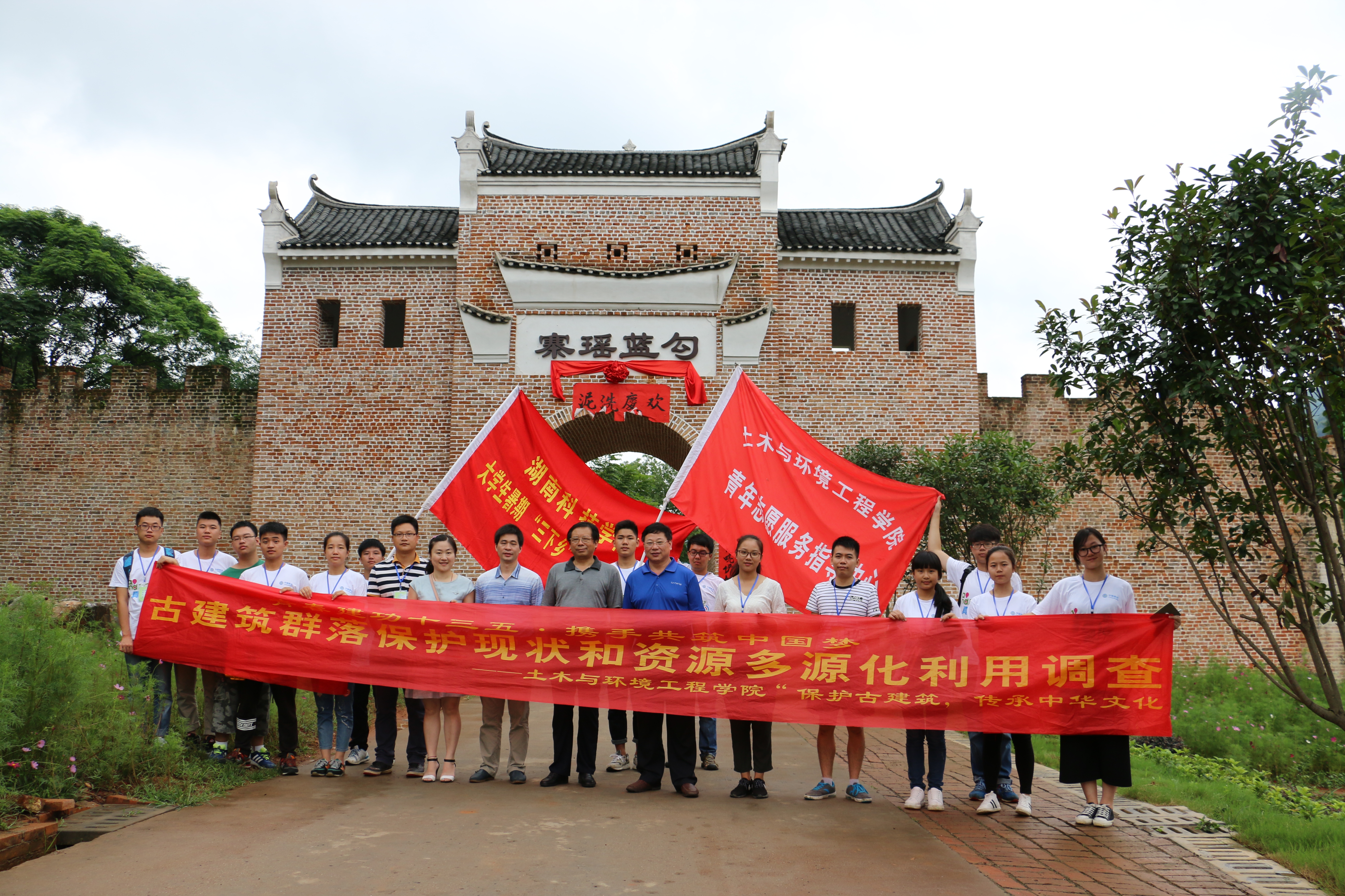 土环院“三下乡”社会实践服务团队响应团中央“青春建功十三五 携手共筑中国梦”的号召,以“古建筑群落保护现状及资源多元化利用调查研究”为主题,在副校长郑山明的带领下于今年7月份深入江永地区对该县水利工程、古村落、古建筑、乡村民居质量以及村民的古建筑保护、防灾减灾意识进行了系列调研,并在调研的基础上,向当地政府部门提出了相关意见和建议,深受当地政府好评,为切实提高当地人民群众的古建筑保护意识、维护当地人民群众生命财产安全、保障当地经济社会全面协调可持续发展贡献出了一份力量。