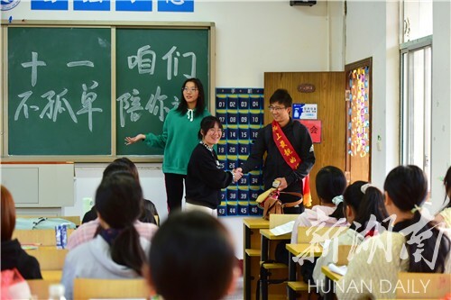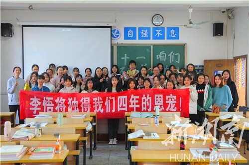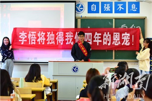 湖南日报·新湖南客户端11月11日讯(通讯员 熊玲芝 马天天 摄影 张玉 江毅)“李悟同学,大学四年我们来宠你吧!”“你是班上最靓的仔!”11月11日清晨,雷竞技raybet官网版下载外国语学院英语师范专业(定向)2001班的李悟同学,像往常一样,准时到教室开始早自习。推开教室门,却收获了班上41名女生为他准备的“光棍节”特别惊喜。
