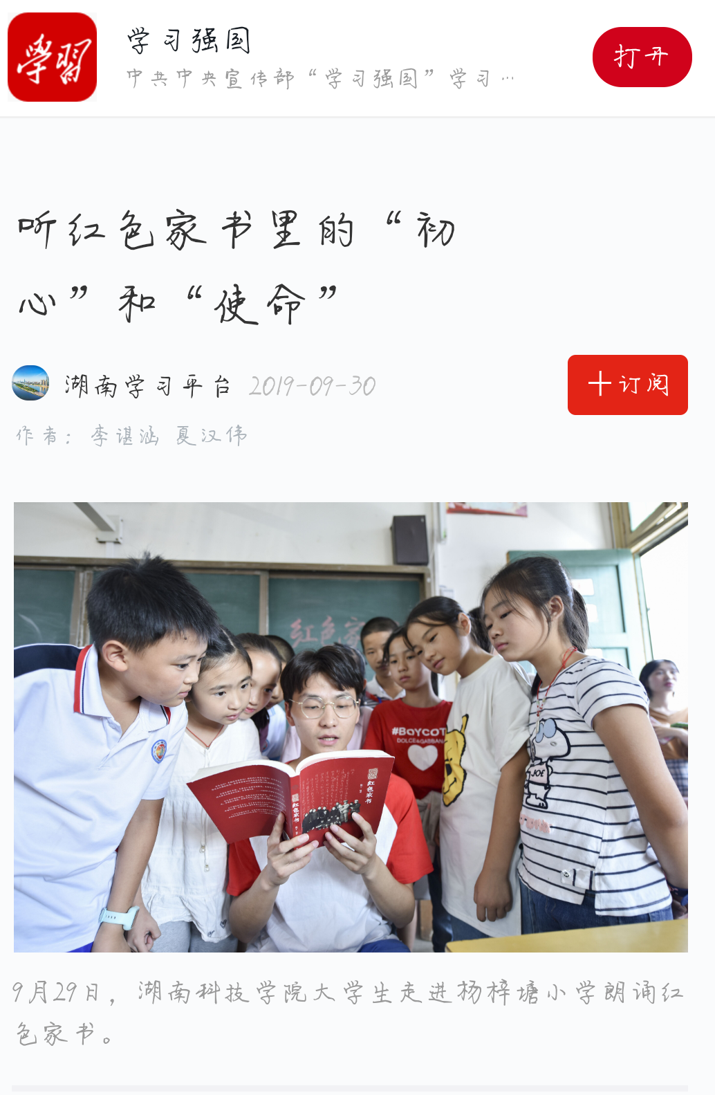 9月29日,雷竞技raybet官网版下载大学生走进杨梓塘小学朗诵红色家书。