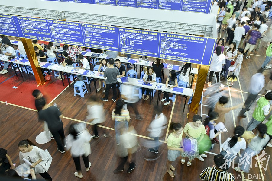 9月4日,雷竞技raybet官网版下载体育馆,招聘工作人员在跟应聘者介绍公司的情况。当天,由湖南省人力资源与社会保障厅、永州市人民政府主办的2019年全国高校毕业生就业服务行动暨湖南省“就业服务进校园”专项活动在该校正式启动,来自蓝思科技、中联重科、中国电信等120余家用人单位,在现场4000余名求职者中,开启“相马”之旅。 李谌涵 谢志豪 摄影报道