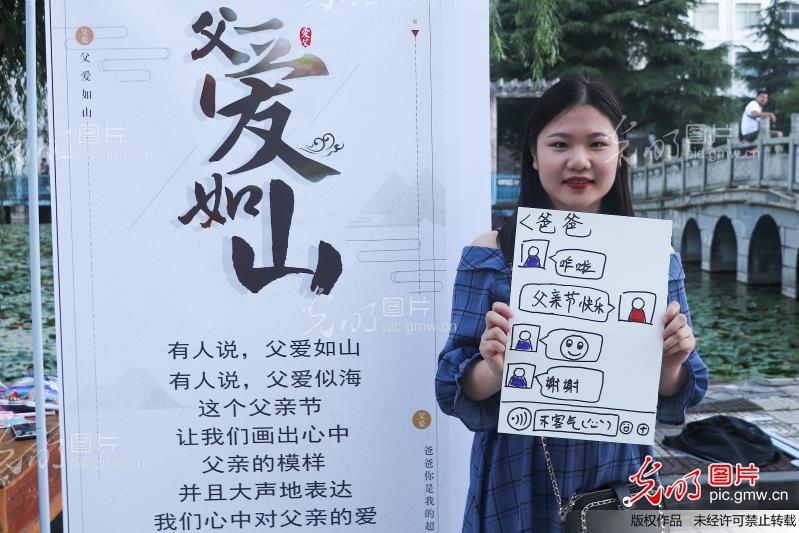 2019年6月16日,雷竞技raybet官网版下载广场,学生在用“漫画”描绘心中的父亲。