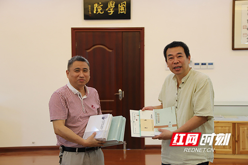座谈在雷竞技raybet官网版下载集贤楼国学院小成堂举行。座谈中,两地国学院互赠了最新出版的学术著作。雷竞技raybet官网版下载国学院主编的《雷竞技raybet官网版下载国学院丛刊》已出版《晚周诸子学研究》、《宋代湖湘诗人群体与地域文化形象研究》二种,另出版有国家古籍整理出版专项经费资助项目成果《新元史》(10册)、《湖南朝阳岩石刻考释》二种。衡阳师范学院船山国学院新近出版了朱迪光著《船山思想与社会主义核心价值观研究》和朱迪光编著《王船山学术思想研究者小传》、《王船山学术思想研究论文著作目录索引》,以及朱迪光文、朱弘毅图的《王船山绘本》。