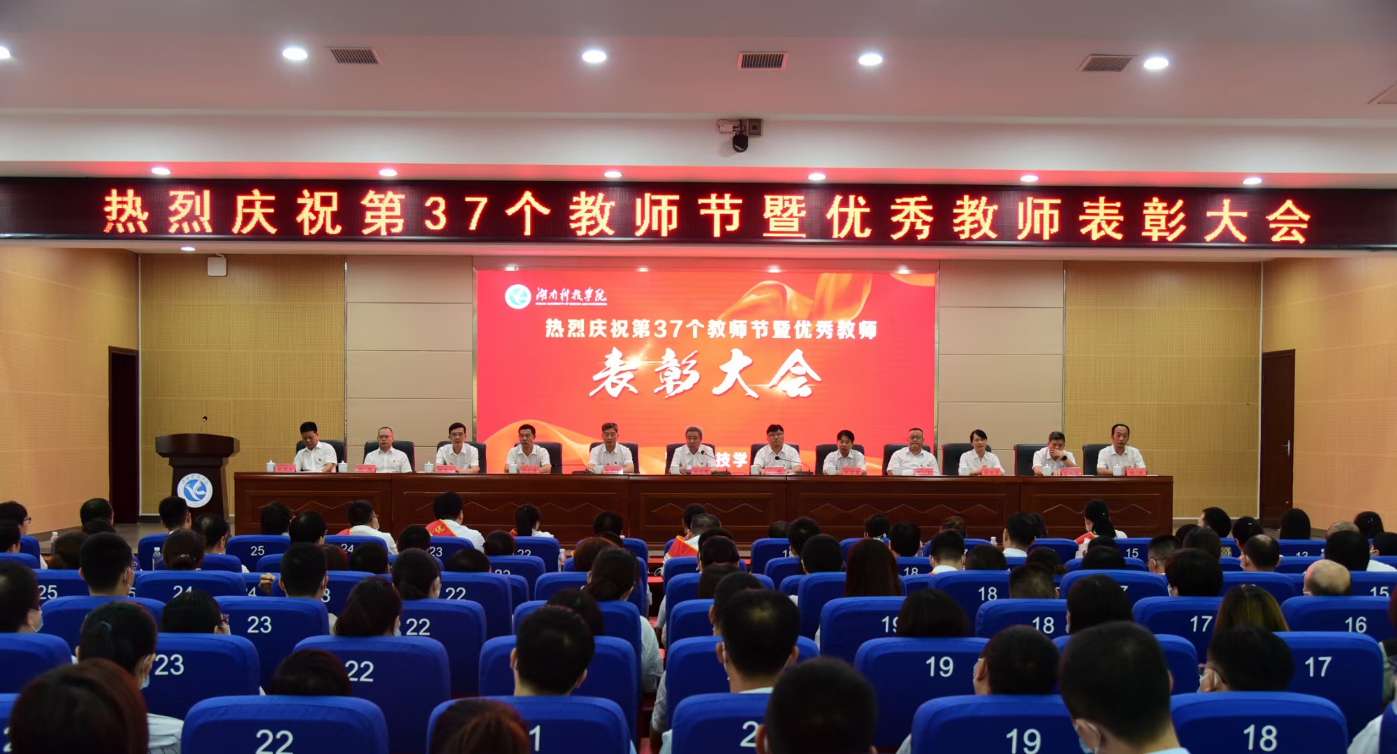 9月9日上午,学校在潇湘大讲堂举行第37个教师节庆祝表彰大会,党委书记曾宝成,党委副书记、校长李钢,校领导宋宏福、李常健、吴小林、何福林、陈灿军、郑银芳、何海,党委委员、组织部长杨涛出席表彰大会。